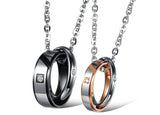 This pair of couple’s necklace is everything that you want your relationship to be: simple, sophisticated, and true. The main hanging band is made with rose gold or sleek black metal with the words 'True Love' delicately inscribed. The interlocking strong, silver ring features a subtlety exposed rhinestone and represents the strength and stability of your union, even when things get difficult.