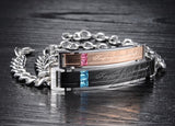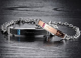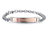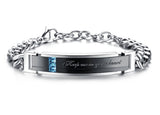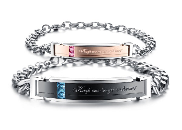 Whether you’re close together or separated around the world, this stunning bracelet set reminds you of your close bond. ‘Keep me in your heart’ is inscribed on the rose gold and black central plaque along with pink and blue rhinestones. The interlocking silver bracelet chain signifies the strength and stability of your relationship as they wrap around the wrists of you and your loved one.
