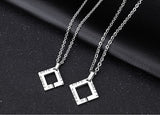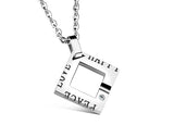 When you find the simple, easy love that just feels right, be sure to cherish it. These modern necklaces feature a square outline shape with a luxurious gem and an open passage on one side for love to enter. The words ‘Peace,’ ‘Love,’ and ‘Happy’ are inscribed with an easy-going, lighthearted design that wraps around the sides.